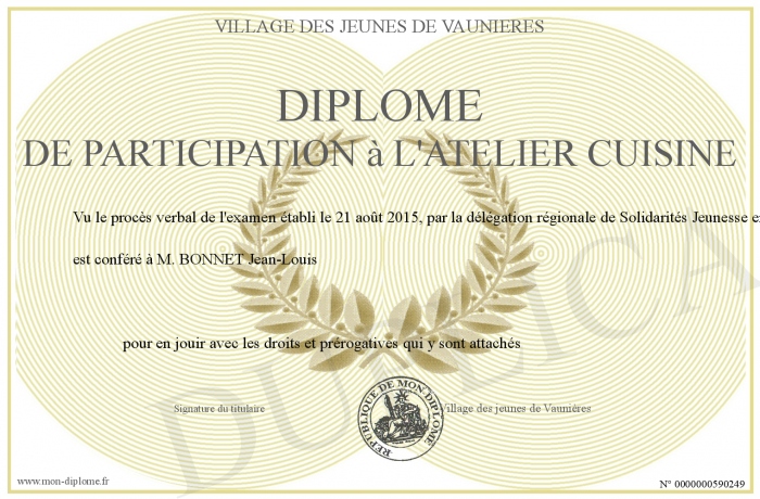 Envoyez par email votre diplôme de participation à l'atelier cuisine personalisé