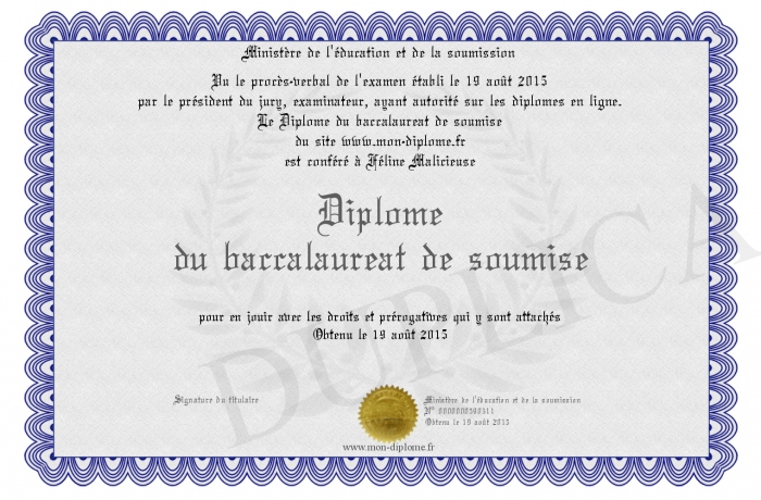 Envoyez par email votre Diplôme du baccalaureat de soumise personalisé