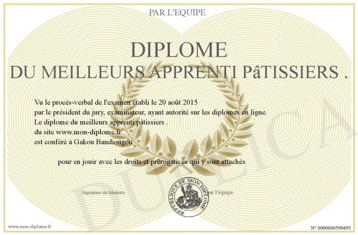 Envoyez par email votre diplôme du meilleurs apprenti pâtissiers . personalisé