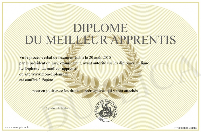 Envoyez par email votre Diplôme du meilleur apprentis personalisé
