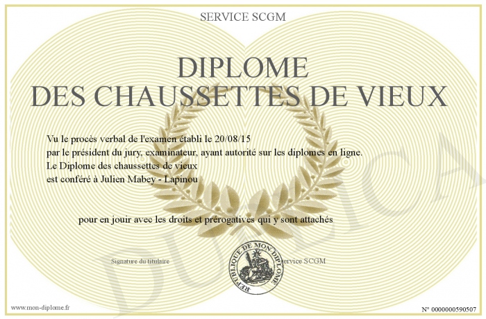 Envoyez par email votre Diplôme des chaussettes de vieux personalisé