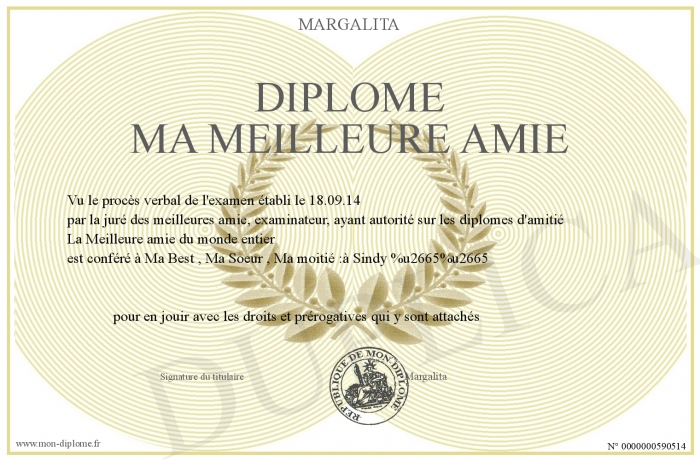Envoyez par email votre Diplôme Ma Meilleure Amie personalisé