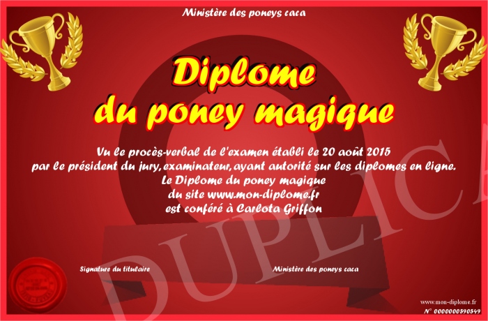 Envoyez par email votre Diplôme du poney magique personalisé