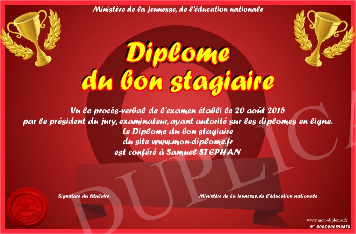 Envoyez par email votre Diplôme du bon stagiaire personalisé