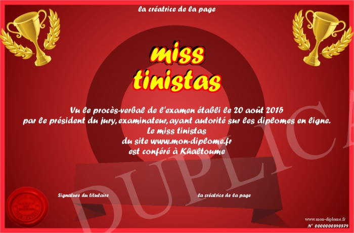 Envoyez par email votre miss tinistas personalisé