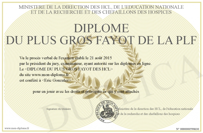 Envoyez par email votre Diplôme du plus gros fayot de la PLF personalisé