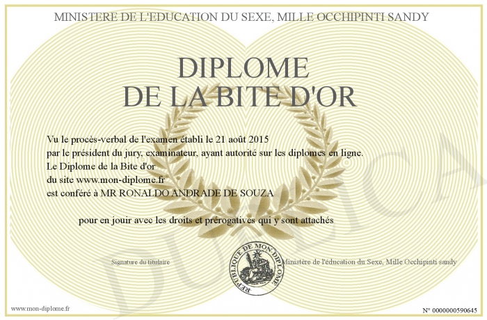 Envoyez par email votre Diplôme de la Bite d'or personalisé