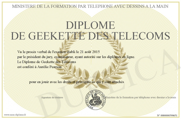 Envoyez par email votre Diplôme de Geekette des Télécoms personalisé
