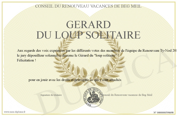 Envoyez par email votre Gérard du Loup Solitaire personalisé