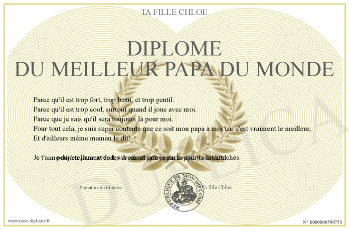 Envoyez par email votre Diplôme du meilleur papa du Monde personalisé