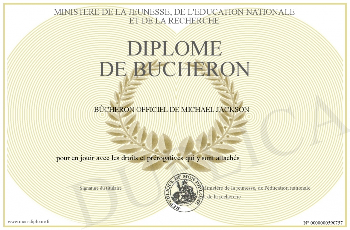 Envoyez par email votre Diplôme de Bucheron personalisé