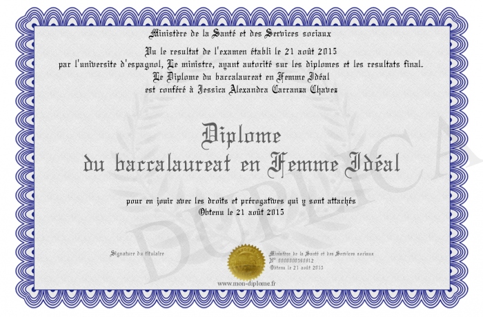 Envoyez par email votre Diplôme du baccalaureat en Femme Idéal personalisé