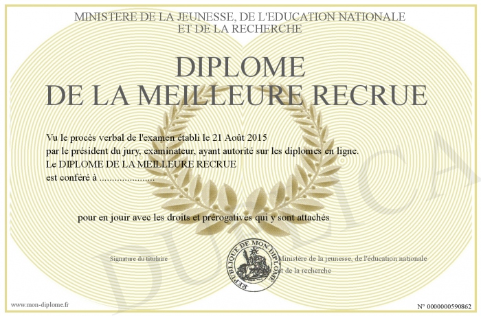 Envoyez par email votre DIPLOME DE LA MEILLEURE RECRUE personalisé