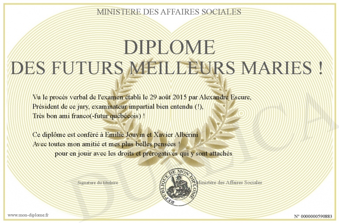 Envoyez par email votre Diplôme des futurs meilleurs mariés ! personalisé