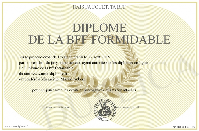 Envoyez par email votre Diplôme de la bff formidable personalisé
