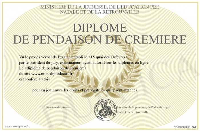 Envoyez par email votre Diplôme de pendaison de crémière personalisé