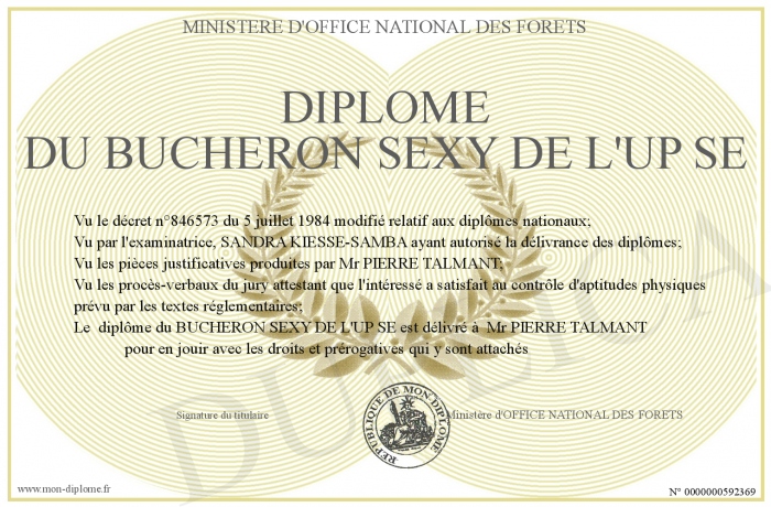 • Diplome DU BUCHERON SEXY DE L'UP SE