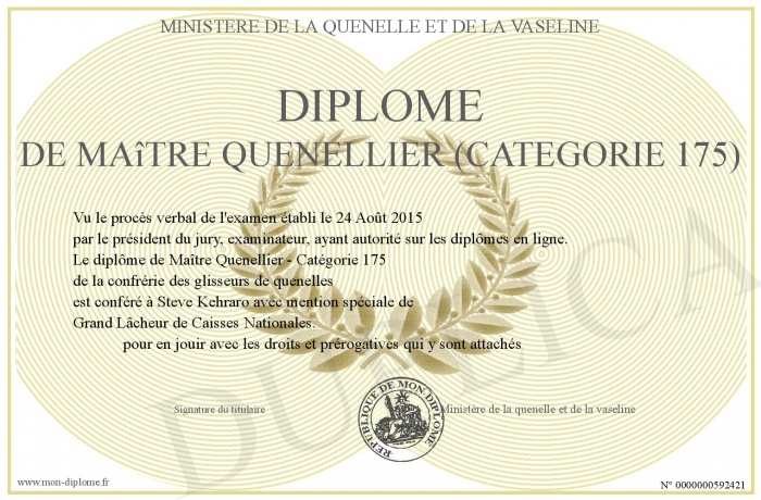 Envoyez par email votre Diplôme de Maître Quenellier (catégorie 175) personalisé