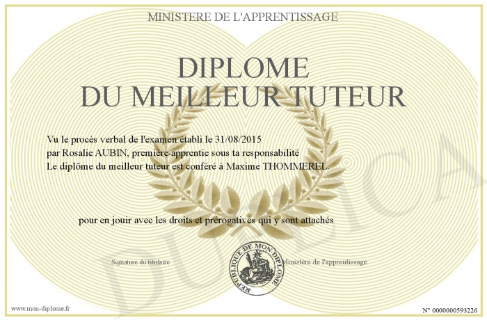 Envoyez par email votre Diplôme du meilleur tuteur personalisé