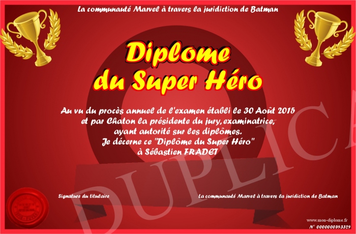 Envoyez par email votre Diplôme du Super Héro personalisé