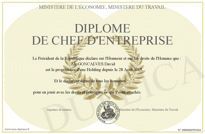 Envoyez par email votre Diplôme de Chef d'Entreprise personalisé
