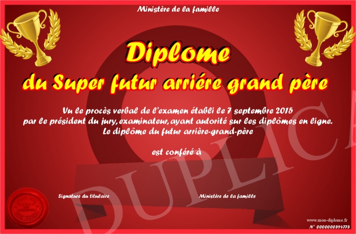 Envoyez par email votre Diplôme du Super futur arriére grand père personalisé