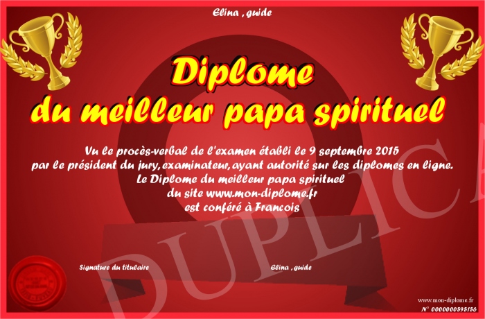 Envoyez par email votre Diplôme du meilleur papa spirituel personalisé