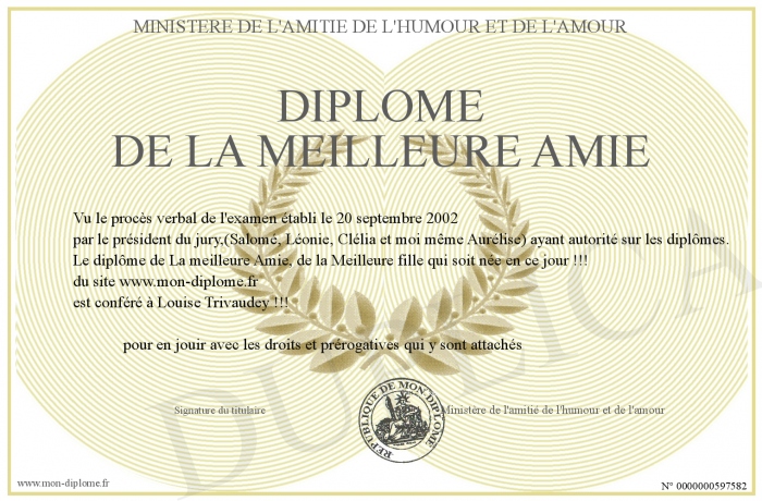 Envoyez par email votre Diplôme de La meilleure amie personalisé