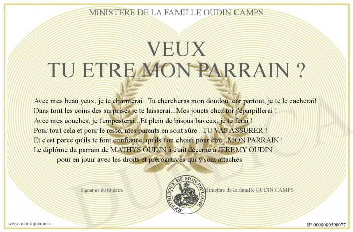 Envoyez par email votre Veux tu etre mon parrain ? personalisé
