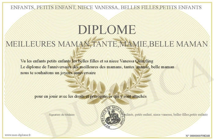 Envoyez par email votre Diplôme meilleures maman,tante,mamie,belle maman personalisé