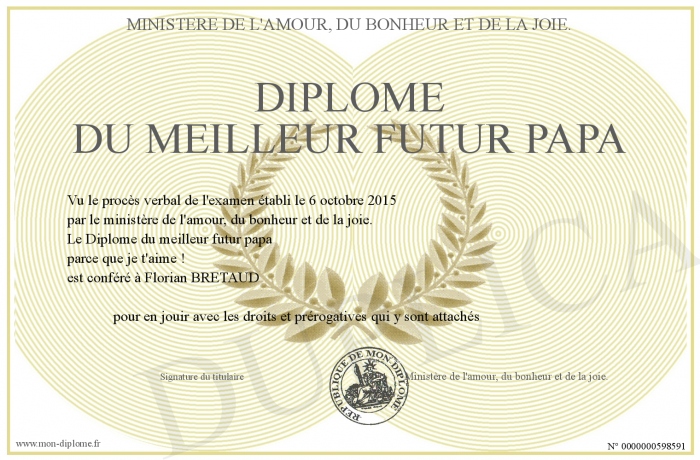 Envoyez par email votre Diplôme du meilleur futur papa personalisé