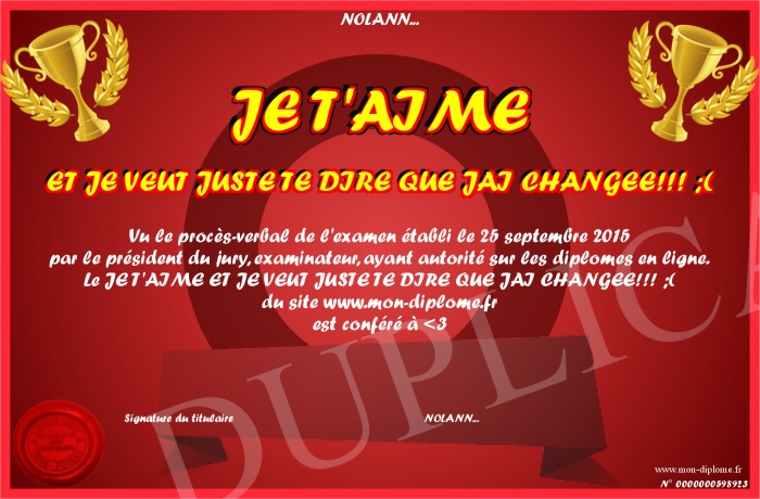 Envoyez par email votre JE T'AIME ET JE VEUT JUSTE TE DIRE QUE JAI CHANGEE!!! ;( personalisé