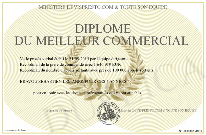 Envoyez par email votre Diplome du meilleur commercial personalisé