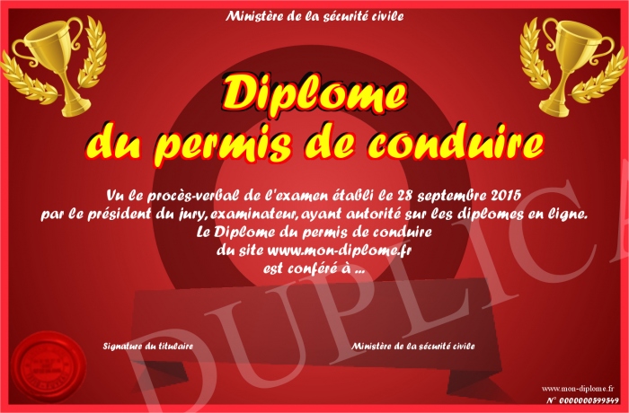 Envoyez par email votre Diplôme du permis de conduire personalisé