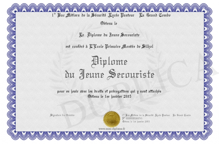 Envoyez par email votre Diplome du Jeune Secouriste personalisé