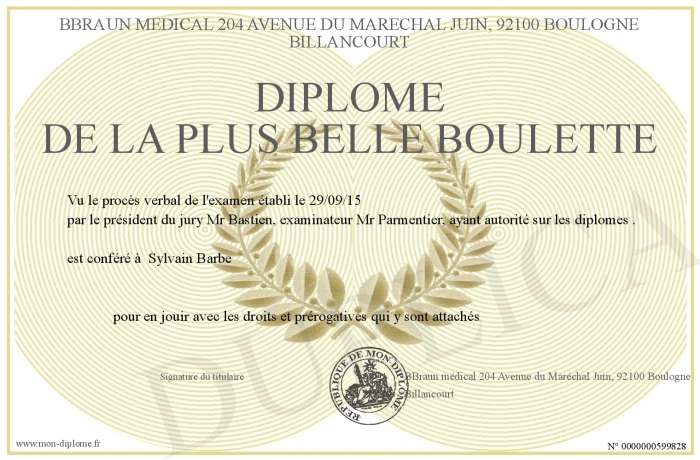 envoyé par le BBraun médical 204 Avenue du Maréchal Juin, 92100 Boulogne-Billancourt !