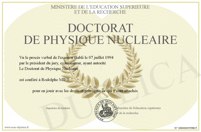 Envoyez par email votre Doctorat de Physique Nucléaire personalisé