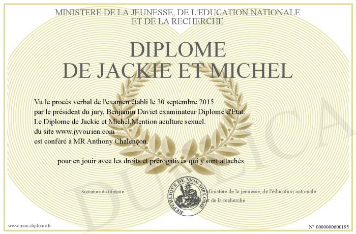 Envoyez par email votre Diplôme de jackie et michel personalisé