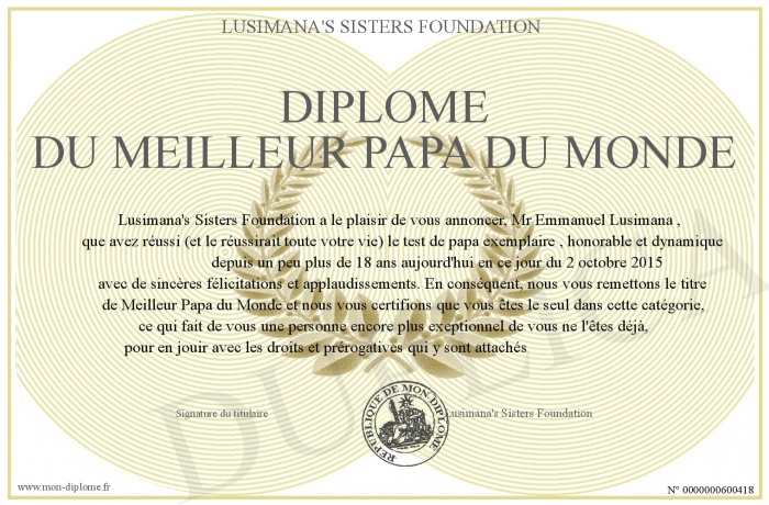 Envoyez par email votre Diplôme du Meilleur Papa du Monde personalisé