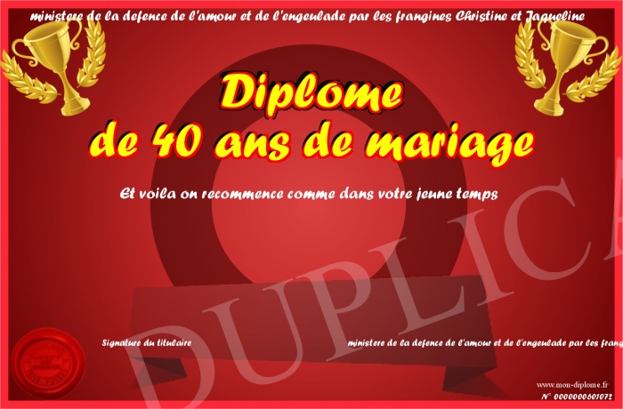Envoyez par email votre Diplôme de 40 ans de mariage personalisé