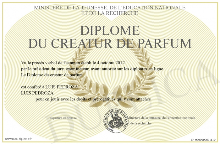 Envoyez par email votre Diplôme du creatur de parfum personalisé