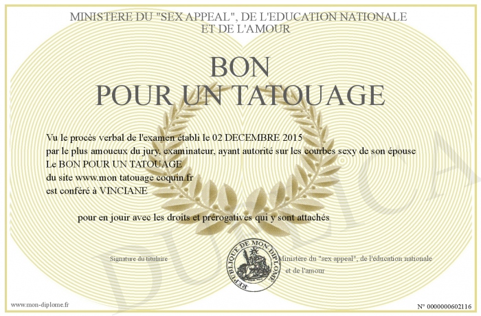 Envoyez par email votre BON POUR UN TATOUAGE personalisé
