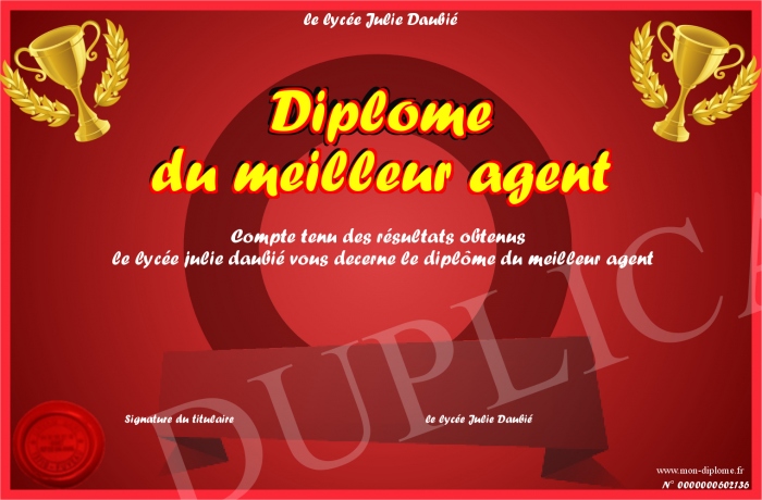Envoyez par email votre Diplôme du meilleur agent personalisé