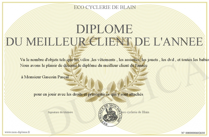 Envoyez par email votre Diplôme du Meilleur client de l'année personalisé