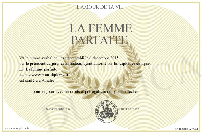 Envoyez par email votre La femme parfaite personalisé