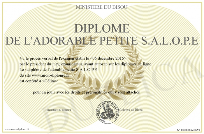 Envoyez par email votre Diplôme de l'adorable petite S.A.L.O.P.E personalisé