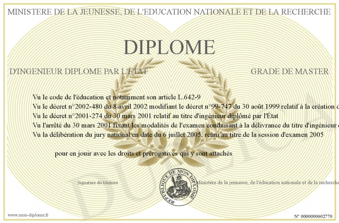 Envoyez par email votre Diplome d'ingénieur diplômé par l'état                                                  Grade de master personalisé