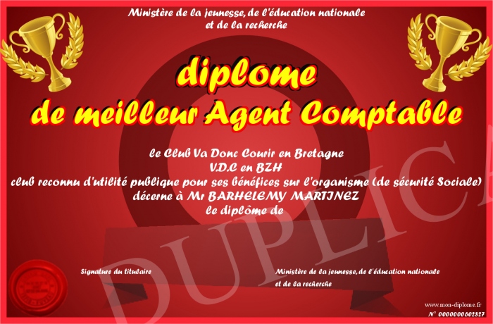 Envoyez par email votre diplôme de meilleur Agent Comptable personalisé