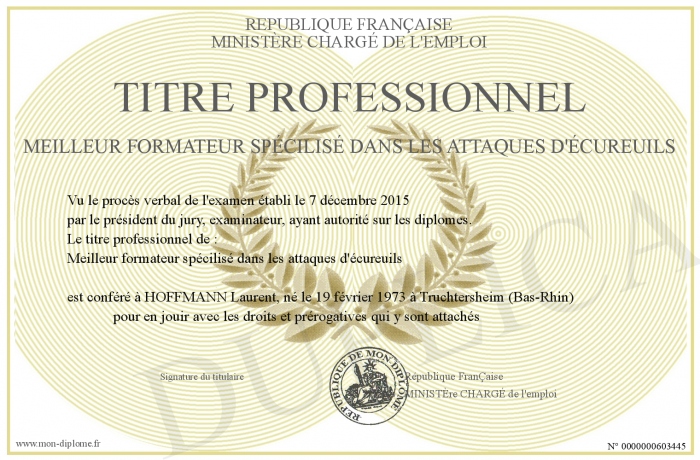 Envoyez par email votre Titre professionnel Meilleur formateur spÉcilisÉ dans les attaques d'Écureuils personalisé