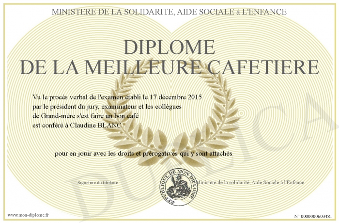 Envoyez par email votre Diplôme de la meilleure cafetière personalisé